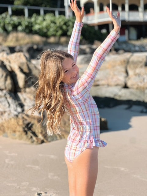 Rainbow Plaid Rashie Swimsuit UPF50+