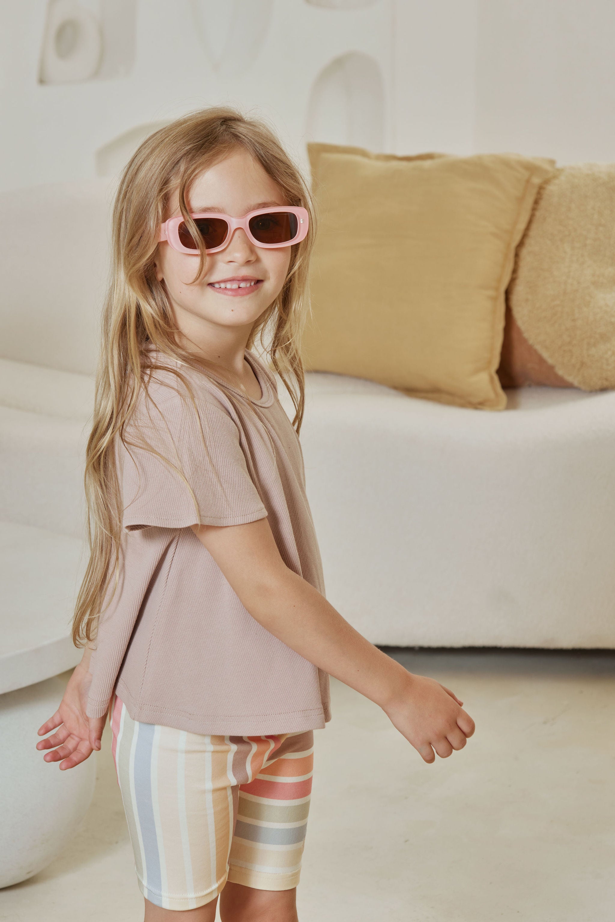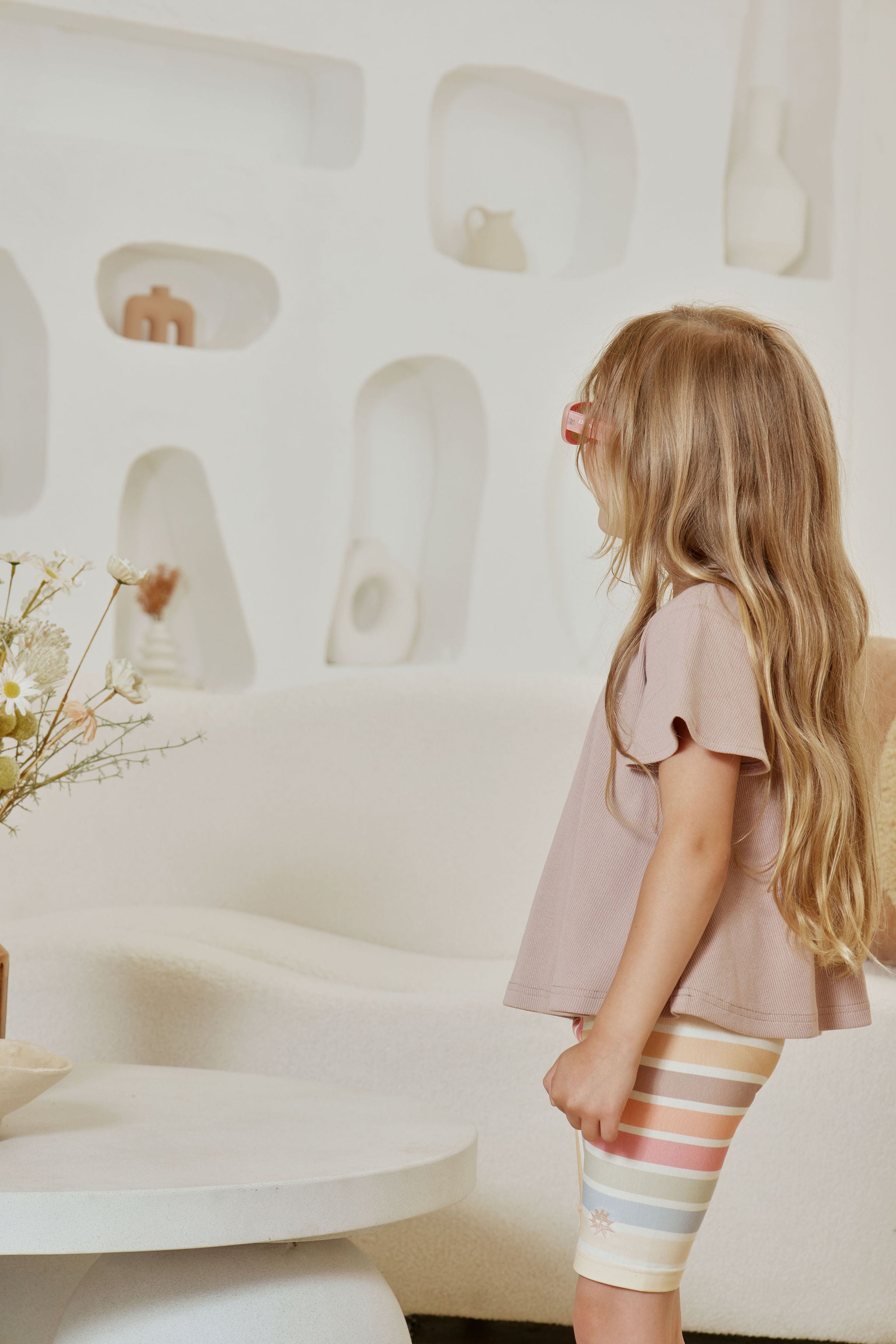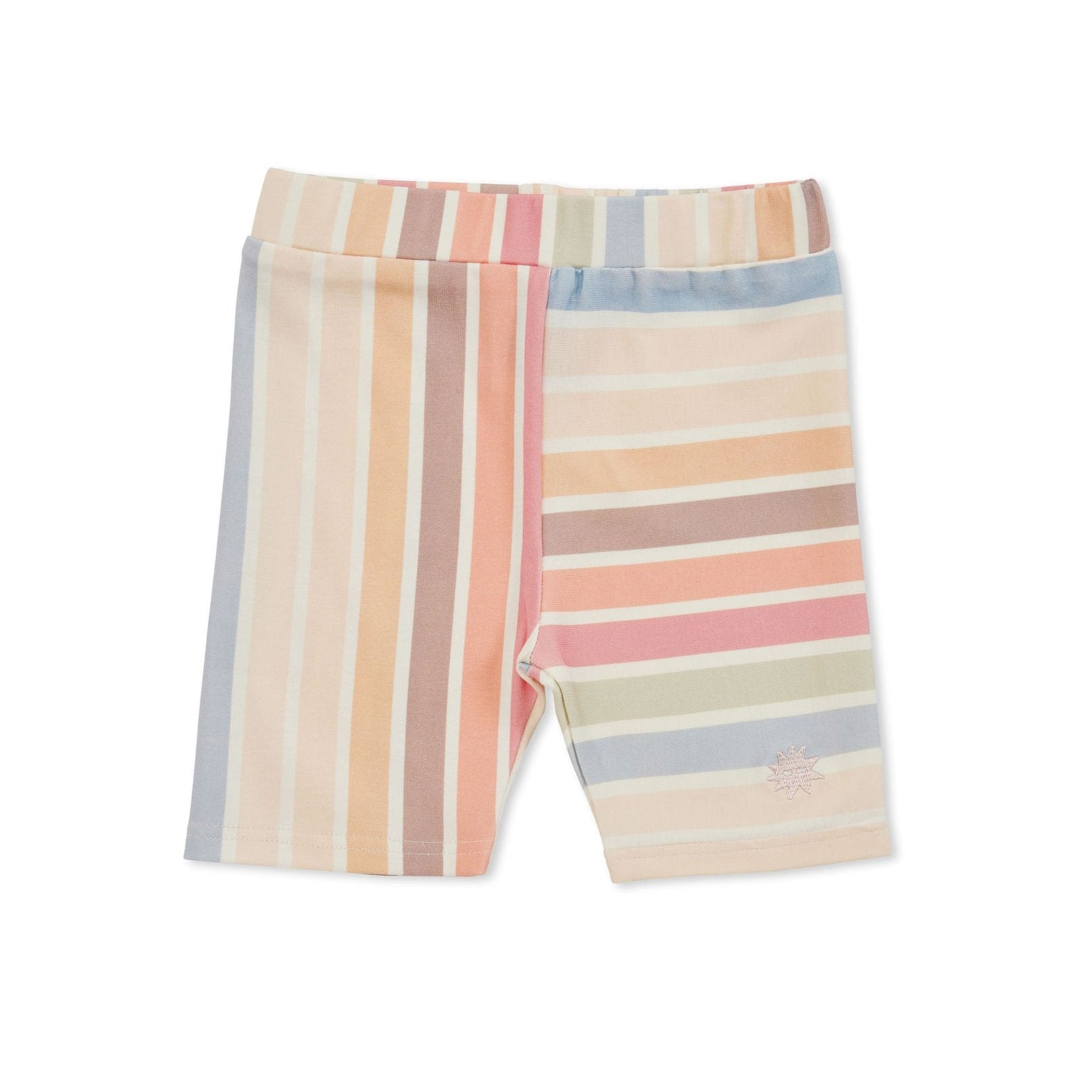 Get ready to ride in style with our Sun Stripe Bike Shorts! Constructed with comfort and performance in mind, these shorts feature a unique pastel rainbow stripe design that will make you stand out! Pair with the Taupe Rib Swing Tee to complete the look. 95% cotton 5% spandex.